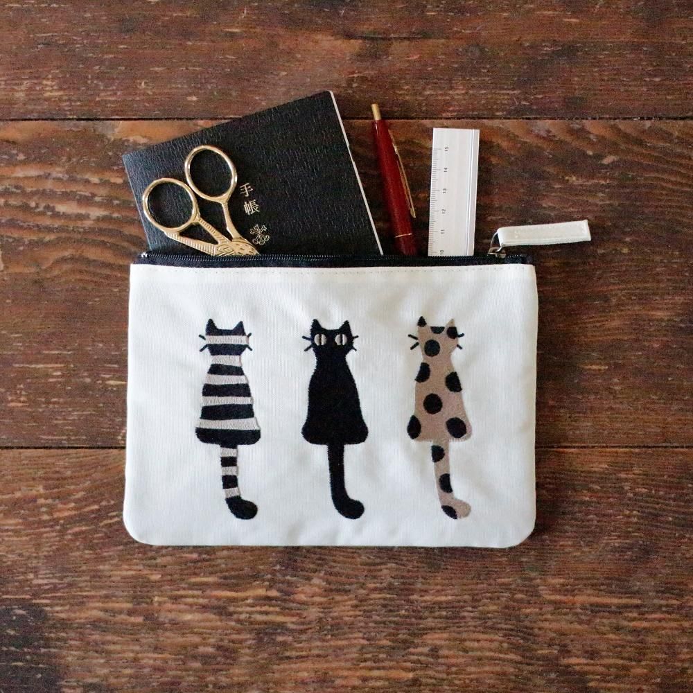 3匹並んだ猫のシルエットが大人可愛い仲良し猫のシリーズです。 猫の部分は繊細な刺繍で、日本製の高品質な商品です♪猫好きにはもちろん、ギフトにもおすすめです。