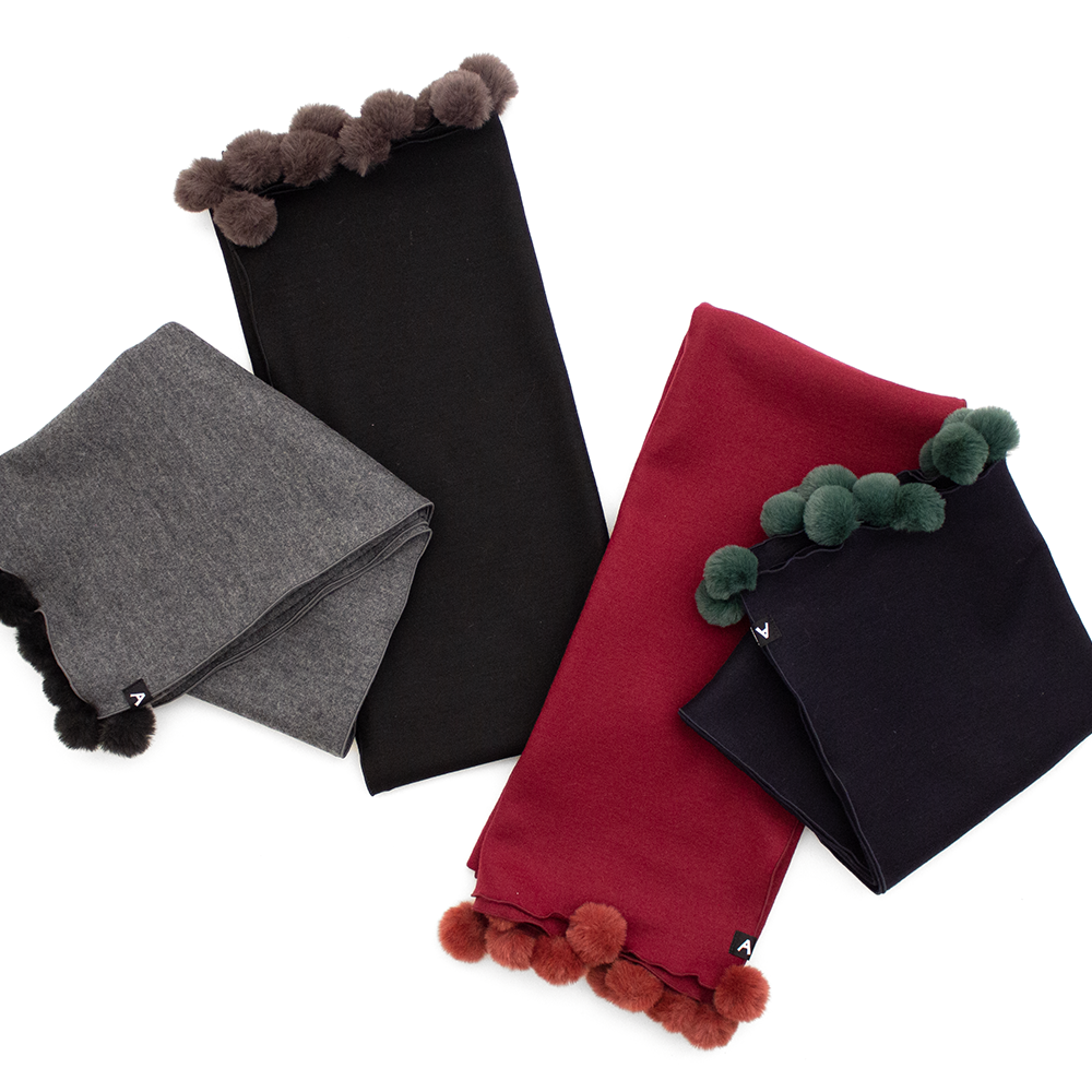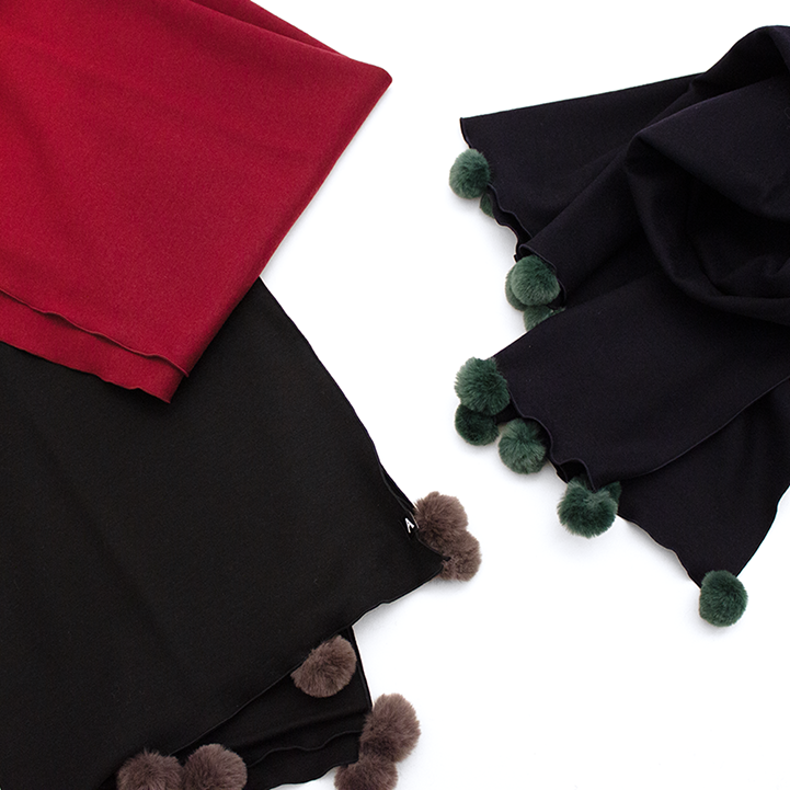 くるりと巻くのはもちろん、幅が広くて生地がしっかりしているので、羽織って使うのも素敵です。 お色は残り、ネイビー、チャコール、レッド、ブラックの4色となりました。 シックでレディなカラーは、ちょっぴりおしゃれをしたい日にぴったりです。お間違いのないようにご注文ください♪