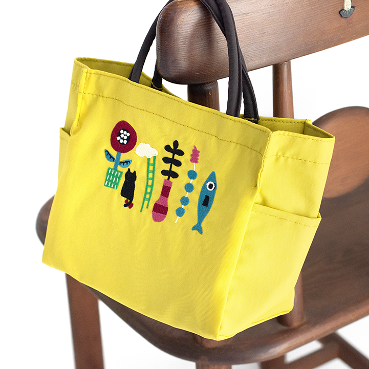 小さめながらしっかり入るマチ付トートは、すっかり刺繍シリーズの定番の形となりました。 荷物が少ない方ならもちろんメインとして、これひとつでさらっと。 そうでない方には、日々のサブバッグやランチバッグにちょうどいいサイズ感です。