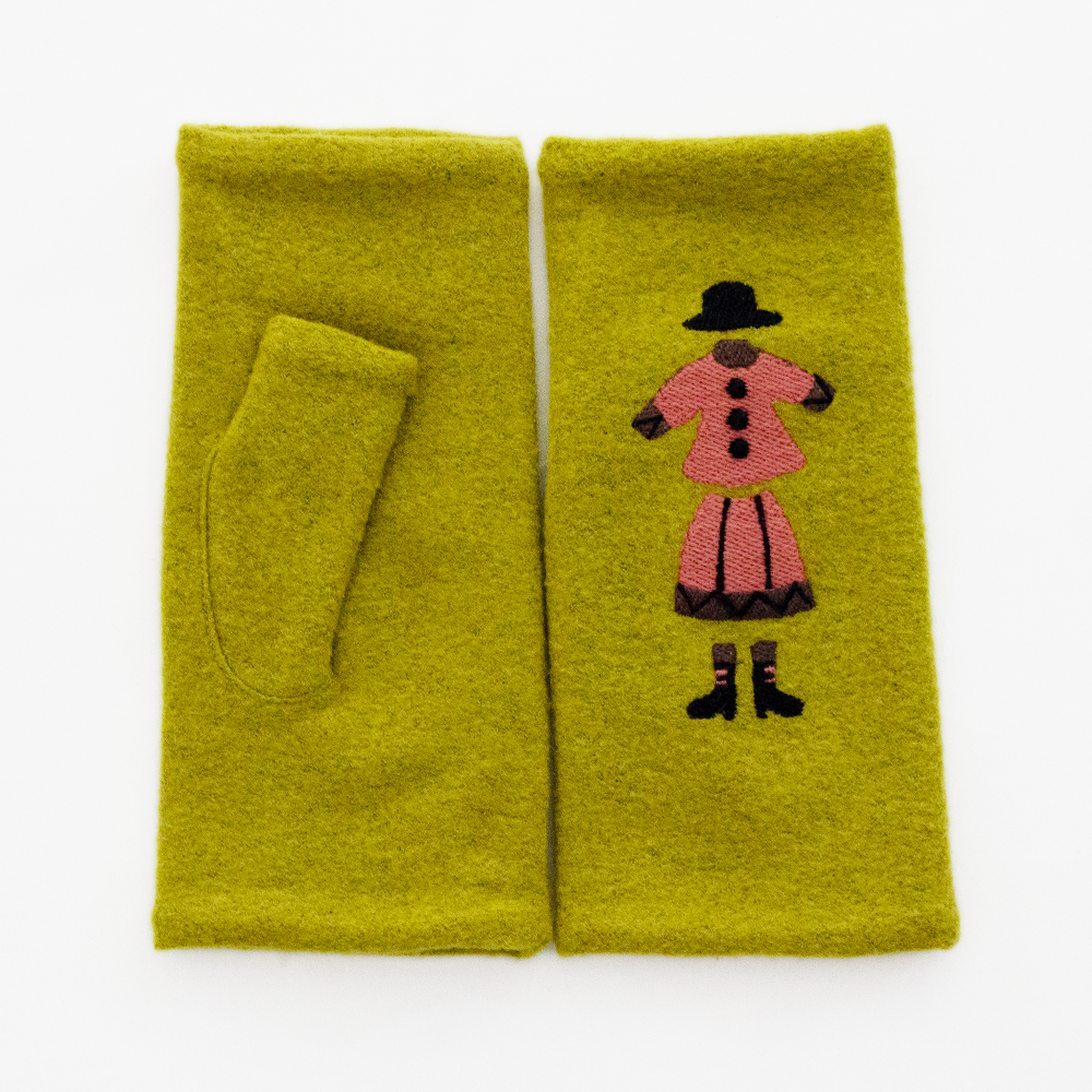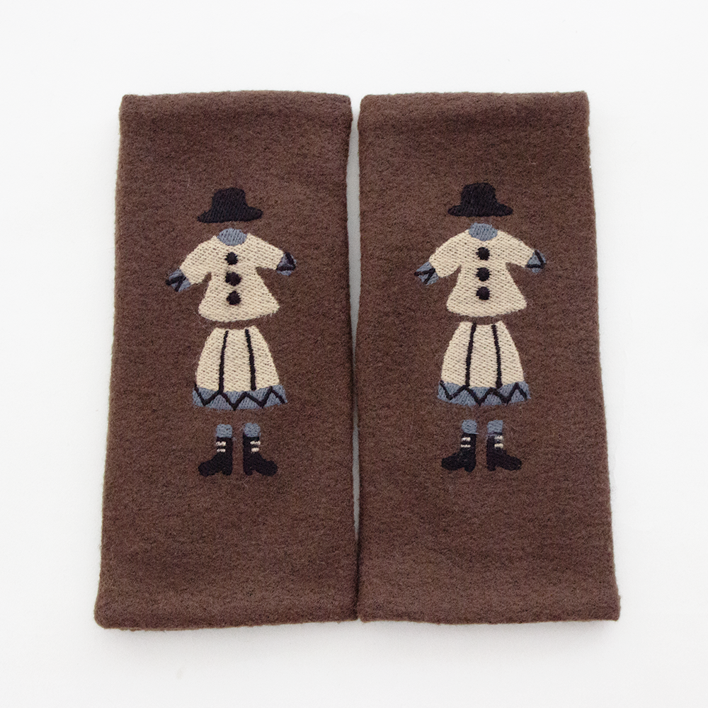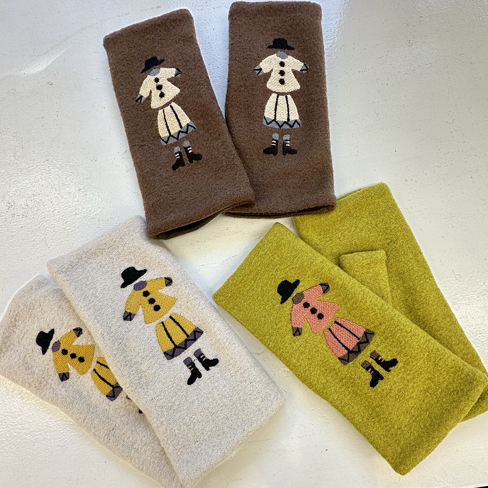 冬のおしゃれな装いを素朴さの残る刺繍で楽しめるこちらの手袋は、指なしタイプでご用意しました。 手袋の生地も毛糸の感触が残る風合いで、見た目にもほっこり癒される可愛さです。 手元を見るたび、愛らしい刺繍をたっぷり楽しめて、ちょっぴりノスタルジックな雰囲気を感じられます。