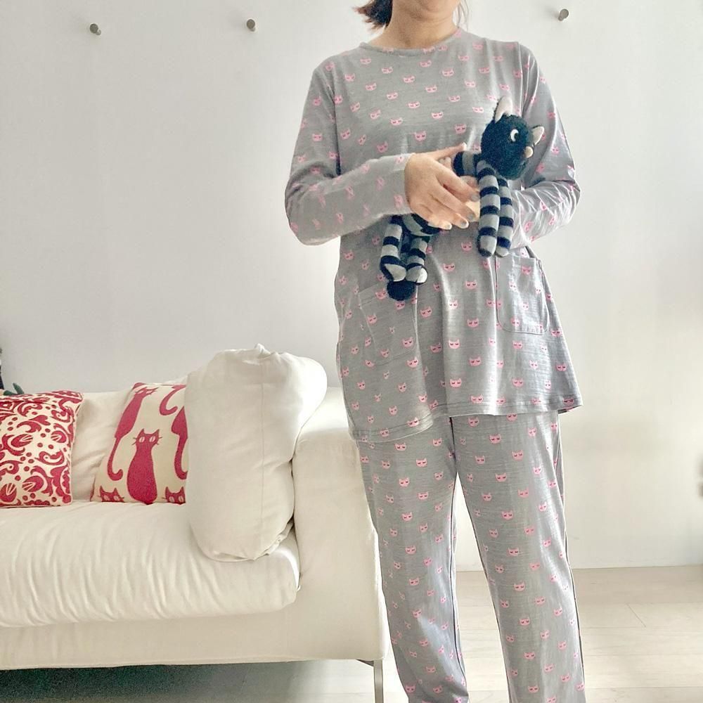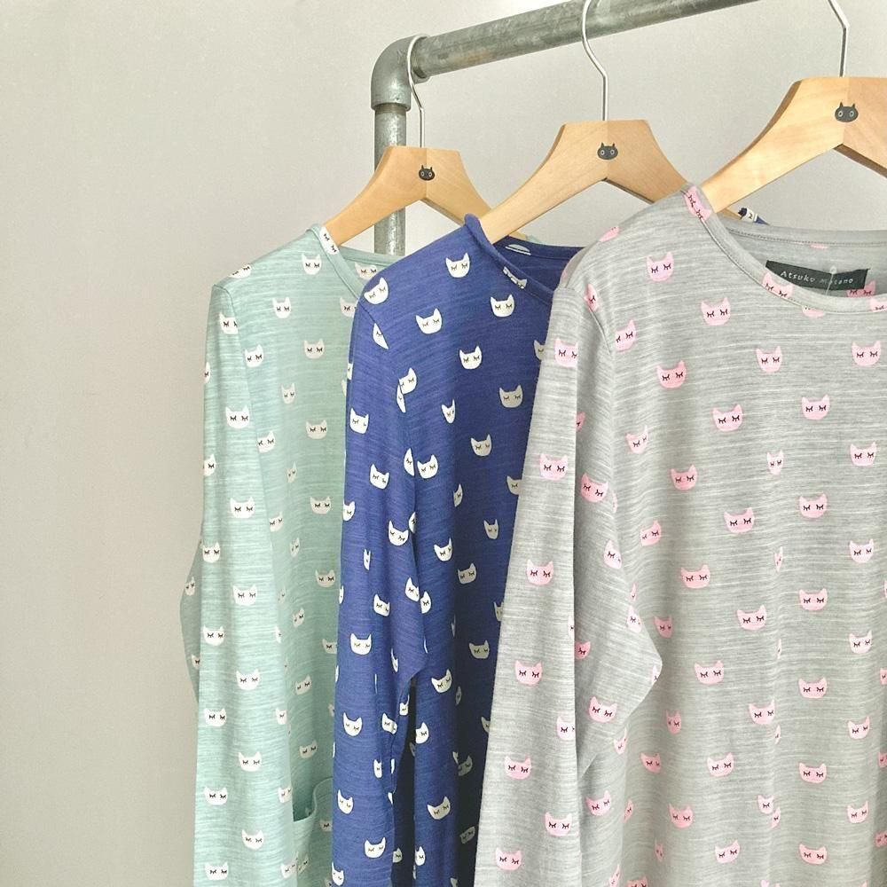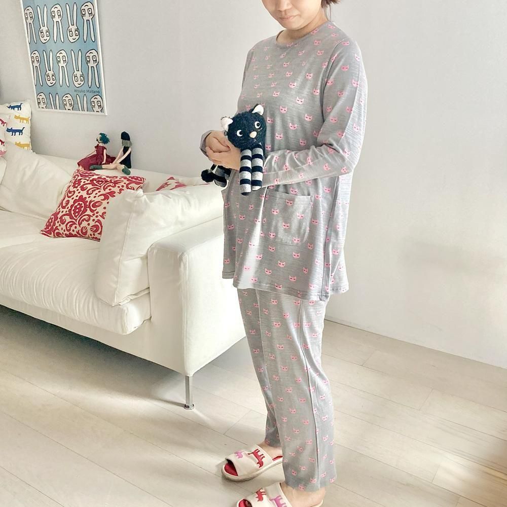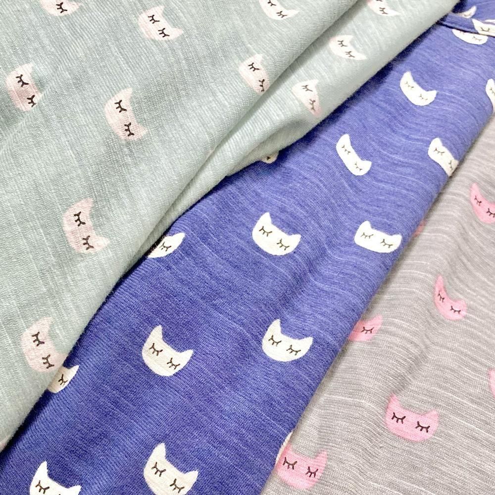 ウトウトと夢をみているような表情の仔猫のパターンが可愛いパジャマです。