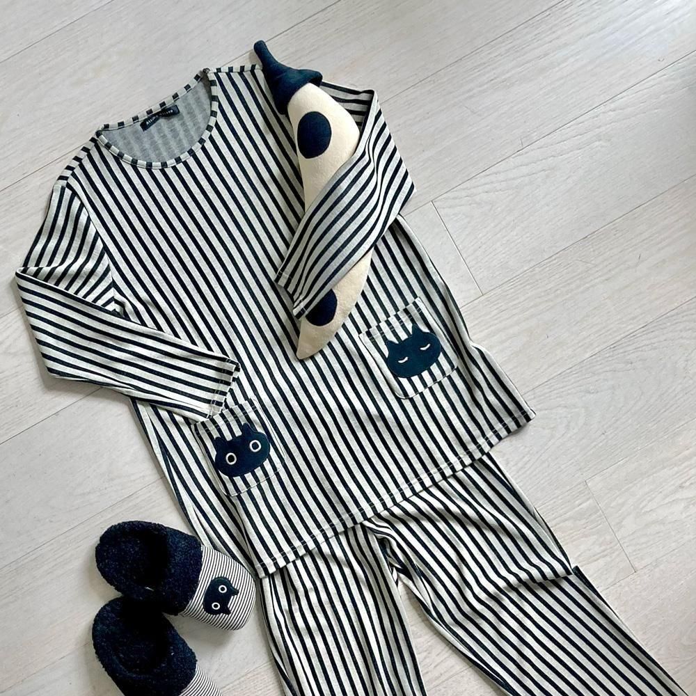 左右のポケットにおはよう、おやすみと思わず声をかけたくなるような、 ぱっちりおめめのMEME&目を閉じたうとうとMEMEの可愛いアップリケ♪ おうち時間をMEMEと一緒に過ごしているような気分を味わえますよ。