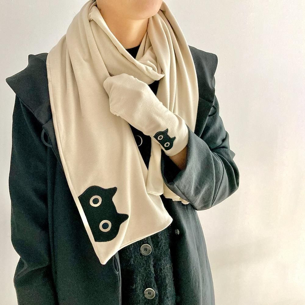 寒くなってきた季節に首元も心もほっこりあたたかくなるストール。 一見シンプルな柄の無いデザインに見えるけど、じつはひょこっと顔を出すMEMEが一匹。 毎日でも使いたくなっちゃう、この冬お気に入り間違いなしのアイテムですよ♪